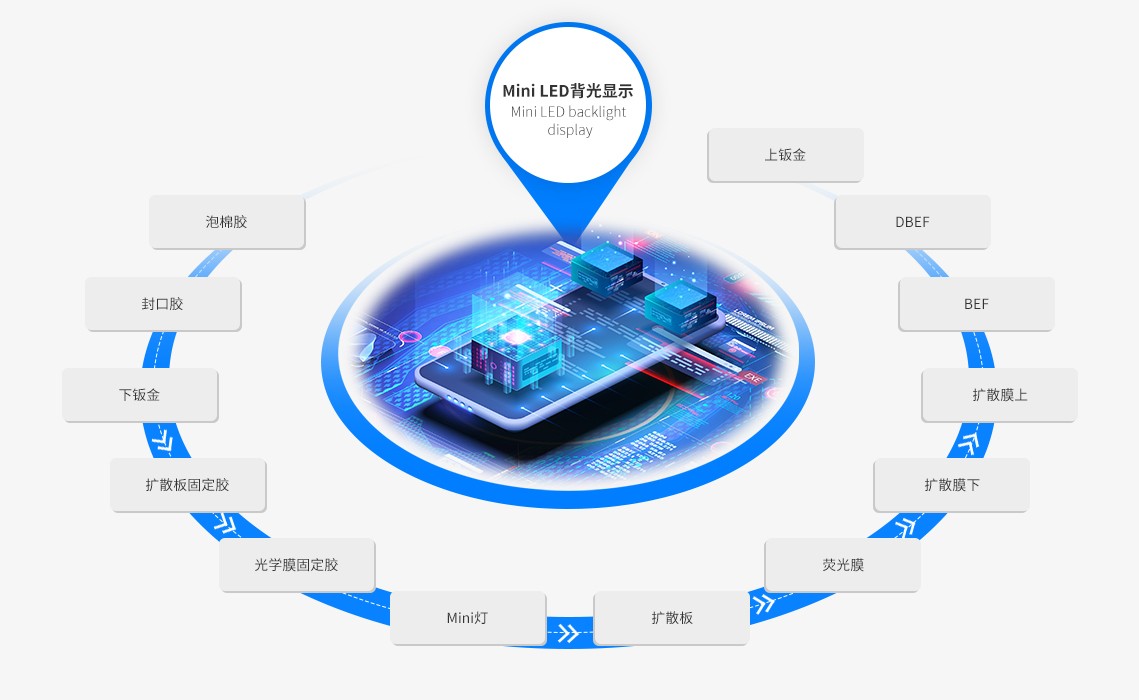 公司深耕背光显示模组领域;通过持续不断的技术创新;不断加深的一体化生产能力;持续打造技术领先、质量过硬、服务周全的优质产品。通过多年模具设计及制作经验,利用日本高精度模具加工等设备;紧贴客户需求,重视产品组合开发,向客户提供一站式专业产品及技术解决方案。